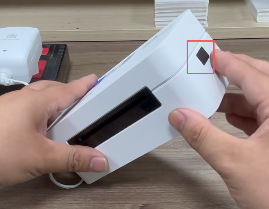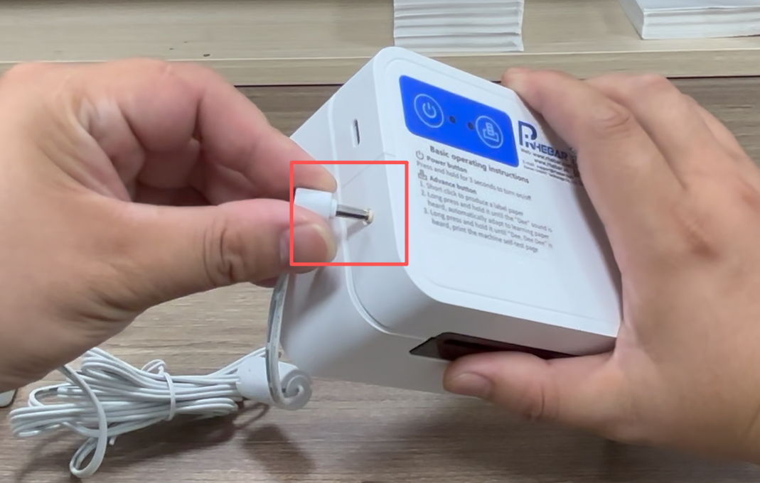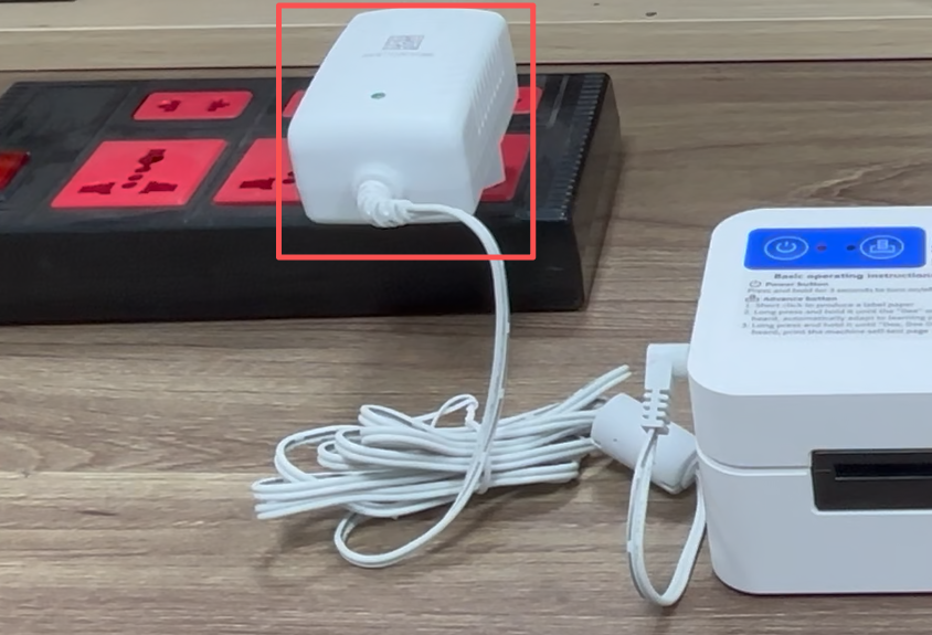 1.Connect the power adapter to the printer and a power outlet. Press and hold for 3 seconds to turn on.