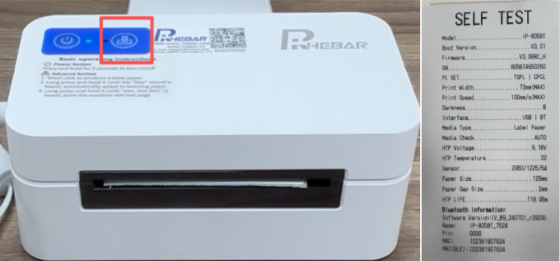 4.Press and hold the Feed button until you hear a "dee, dee dee" sound to print a self-test page