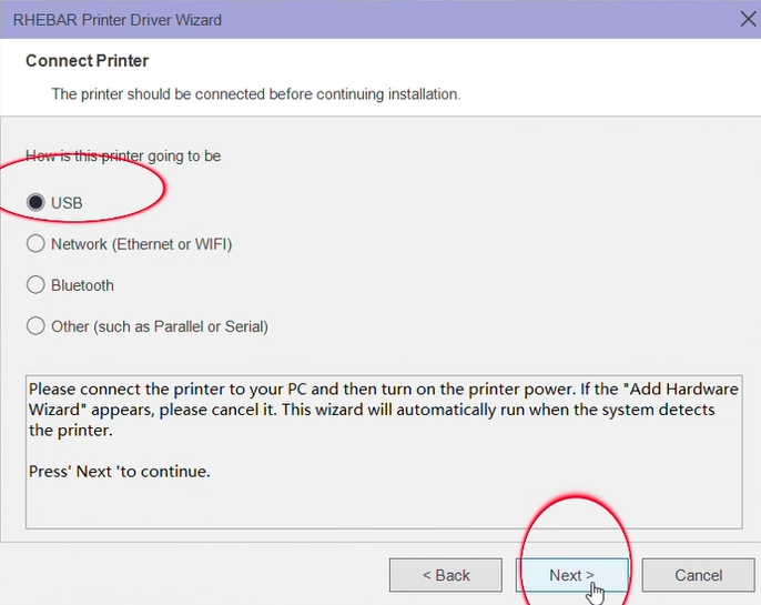 5.For driver installation, please refer to the video or the user manual belo6.Connect the printer to the computer using a USB cable.